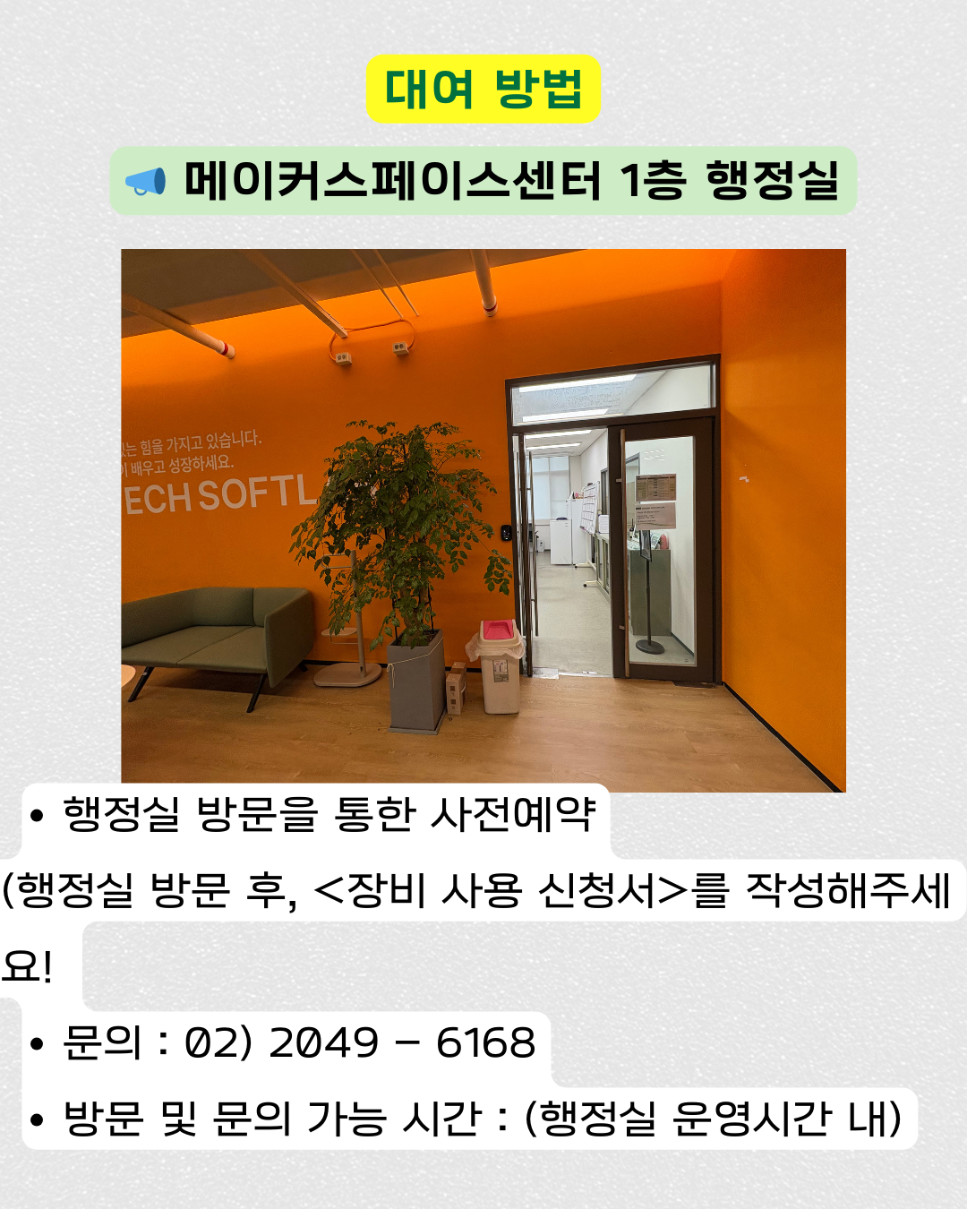 방문 후 **<장비 사용 신청서>**를 작성해주세요 😊